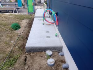 機械置場の土間コンクリート仕上げですね!今回が最終の打設でしたので外構工事は完了です。