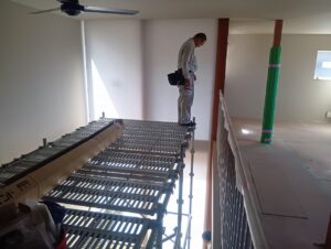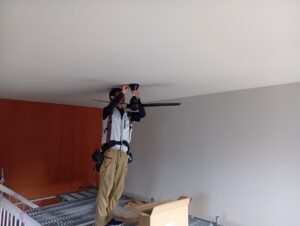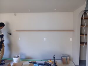 器具付けが始まりました!照明器具やスイッチ、コンセント、換気扇や給気口など設置位置を確認しながら取付けていきます。