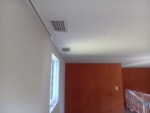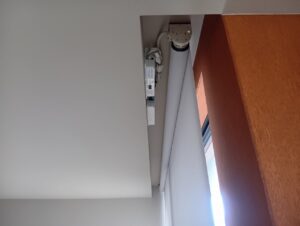 電動式ロールスクリーンの取付工事を行いました!設置位置や動作状況など確認し作業を進めていきます。