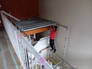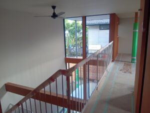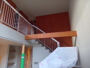 内部吹抜けの足場を解体しました!足場が無くなり開放的な空間になりましたね。