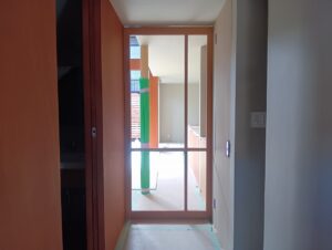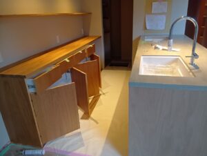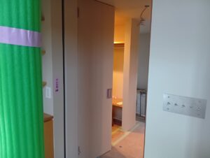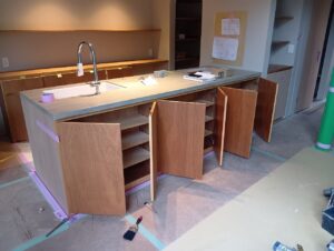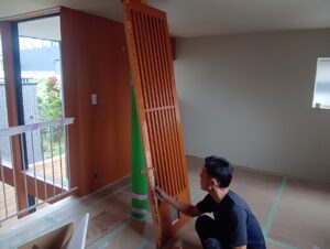 内部の木製建具や造作家具などの塗装が始まりました!カラーが入ると空間にメリハリが付きますね。