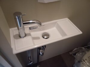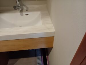 内部シーリングの施工状況ですね!水廻りを重点に施工してあります。しっかり養生して作業完了です!