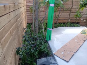 外構工事だいぶ進んできました!植栽も搬入され植え込みも始まりましたね。だいぶ雰囲気が出てきました!