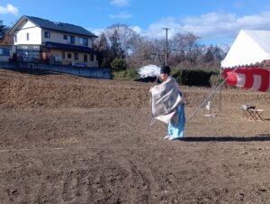 地鎮祭を執り行いました!若干風はあったものの天候は晴れ。ご祈祷も滞りなく進行し無事終了です!