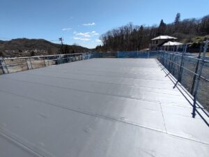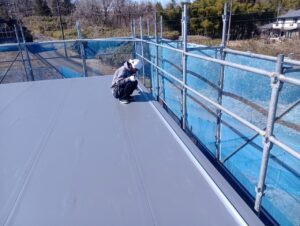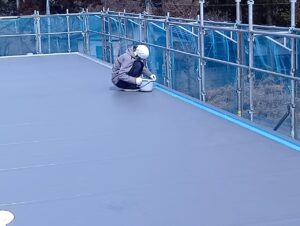 アングル部分の塗り防水を施工してます。段階ごとに色分けし重ね塗りをしていくことで防水性を高めていきます!