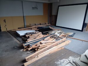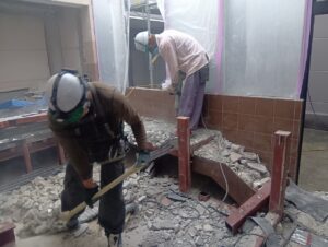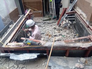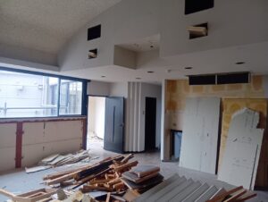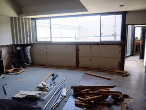 内装の解体工事が始まりました!既存部との取合いに注意しながら施工範囲を確認し進めていきます。