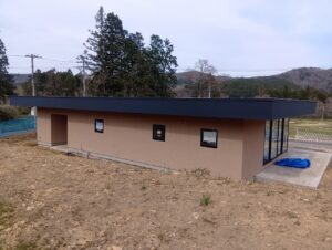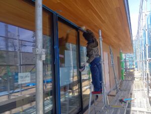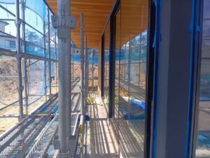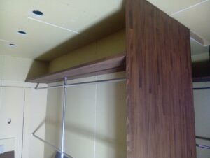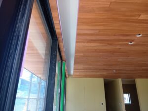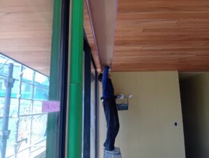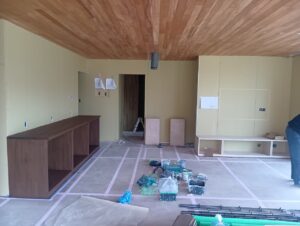 内部塗装の施工状況ですね!木部を中心に造作家具などの塗装を進めております。